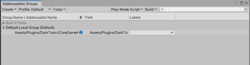 Window -> Asset Management -> Addressables -> Groupsand you will see this: -